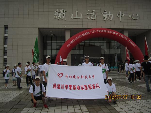 7月7日上午av在线 “三下乡”之“洛川苹果志愿服务队”参加了“2012年陕西省大中专学生志愿者暑期‘三下乡’社会实践活动出征仪式暨WWF‘秦岭青年使者’活动启动仪式”,与会领导的发言使队员们信心满满,下乡的热情更加高涨了。