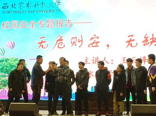 王老师首先以他在保卫处的工作经历及切身感受开篇,切实分析了当代大学生所面临的安全隐患,提高了新生们对校园安全的认知。他提出维护校园安全需要学校和学生共同努力,每一位同学都应该重视自身安全,增强安全防范意识。王老师从人身安全、财产安全、消防安全、心理安全、实验安全等多方面出发,通过多起发生在大学校园内的真实案例,详细周到地向学生们阐述了在未来的大学生活中将会面临的安全问题。王老师以其生动的语言及有趣的互动,调动起了同学们学习的积极性,赢得了听众们的一致好评。