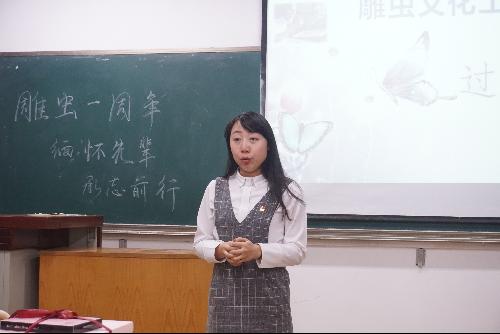 12月2日晚,av在线 学生专业社团《雕虫文化工作室》一周年庆祝活动在N3213教室举行,学院副教授靖湘峰老师,辅导员张楠老师、高晴老师,2018年《雕虫沧桑》话剧主演李海威同学以及工作室全体成员参加。