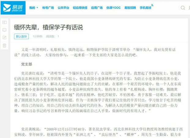 “清明将至,回望历史,他们的一生是奋斗在学术事业建设上的一生,是奉献在爱国育人道路上的一生。先人们的崇高精神将永远激励并指引着我们,鞭策我们继续奋进新时代,开创新未来!我愿不懈努力去担负起时代的重任,响应习近平总书记将中国人的饭碗端在自己人手里的号召,为解决粮食产量问题贡献自己的一份力量!”